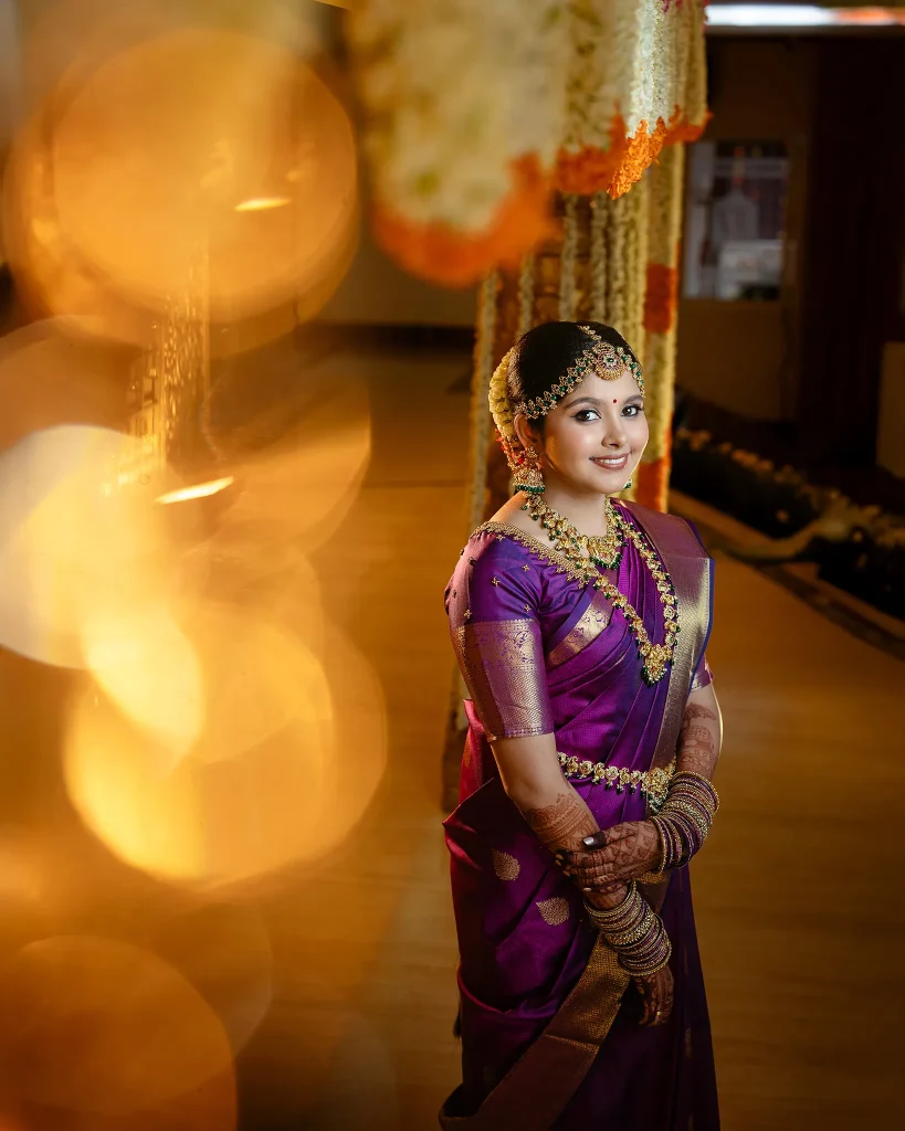 As the top wedding photographer in Chennai, we recommend that couples plan their outfits, schedule enough time for portraits, and communicate special requests with us in advance. This ensures a smooth shoot and stunning results. Time is the key to amazing portraits — couples need to be ready well before the ceremony start time. For example, if you have a wedding reception at 6:30 pm, aim to be ready by 5 pm for the couple shoot. Inform your makeup artist to finish at least an hour before the event to allow time for portraits. Taking couple portraits after the event is not advisable. Additionally, make sure to sleep well the night before, avoid unnecessary stress, and don’t overthink the arrangements. Just relax and enjoy your day — your natural happiness will make every photo stunning.
